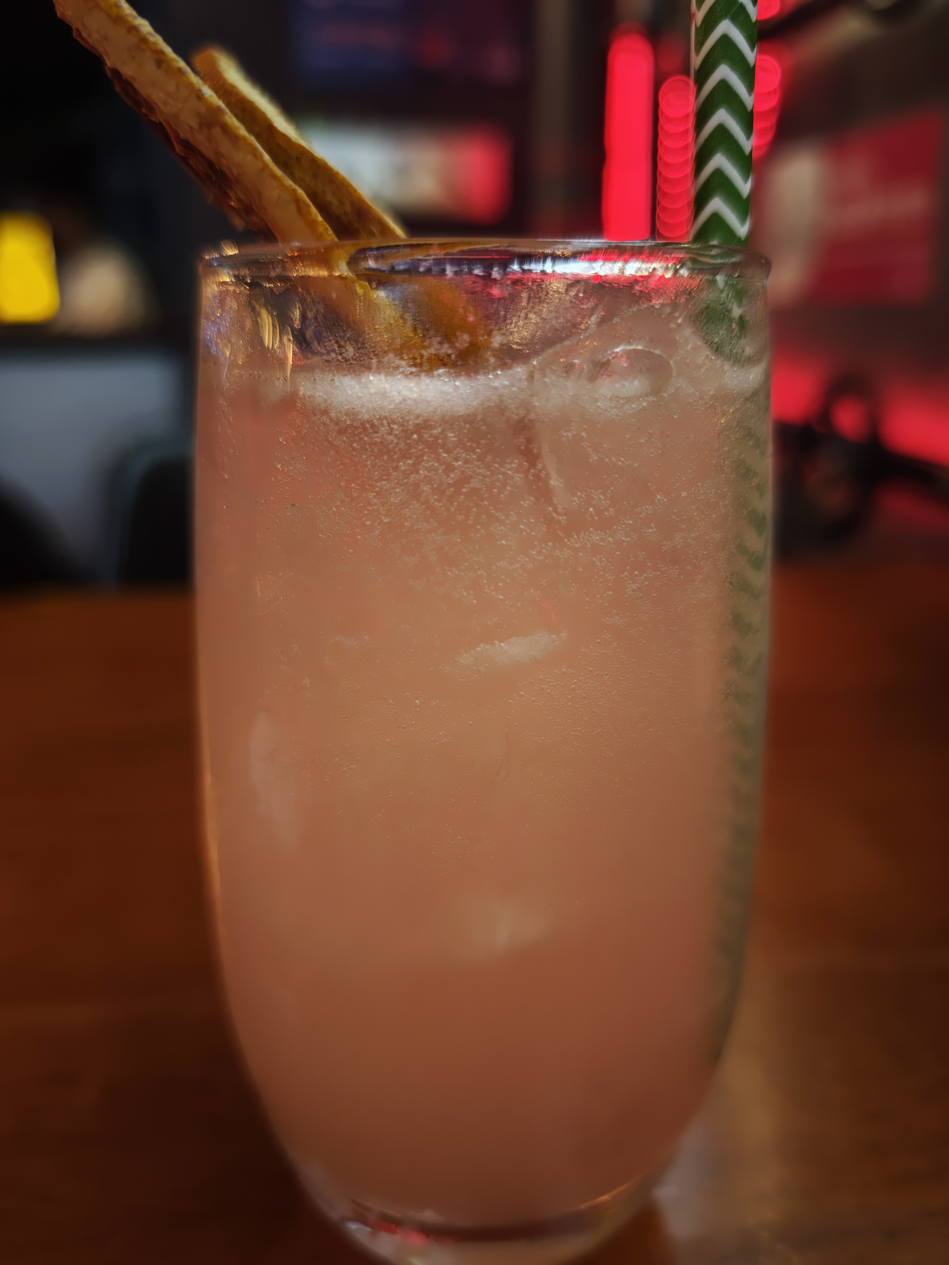 6月20日,我在Aimee上发下决定,周六晚上决定去一次酒吧,当一次“烂仔”。周六晚上,过了饭点还没吃,肚子微微痛,不太想去了。参加完团体后,状态好多了,就决定去,吃了兰州拉面再去喝酒,空腹喝酒伤身。进去后,点了杯气泡鸡尾酒,68元,真TN的贵,8度还是10度,喝再嘴里有点点酒味,难喝点的汽水。然后我在那写东西,旁边一桌在那打牌,我对面靠窗台的,在那自拍,我只是静静坐在那写东西,音乐不错,时不时抿一口汽水,还算惬意。整个感觉和在肯德基喝咖啡的感觉没区别。