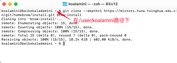 用终端打开user/koalamini路径,输入./uninstall.sh卸载 homebrew