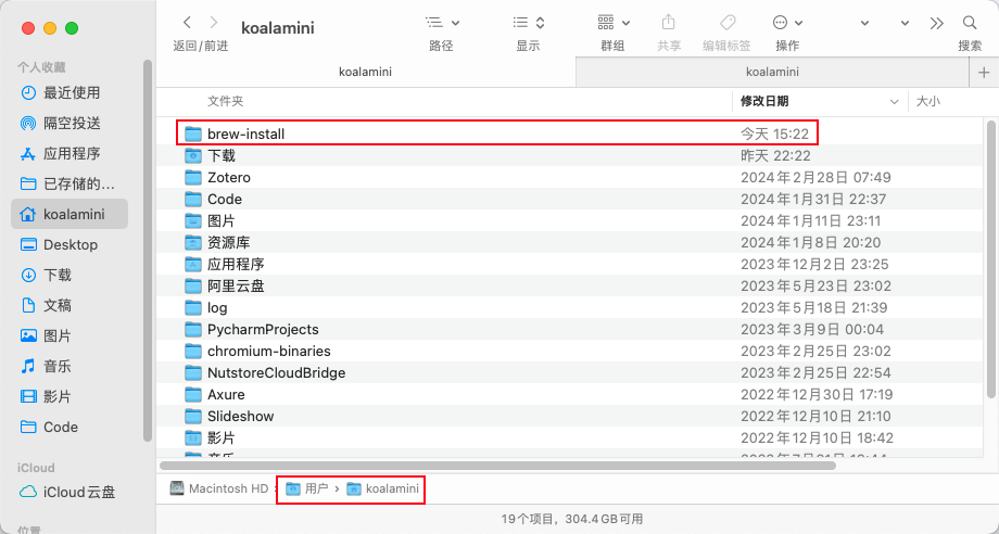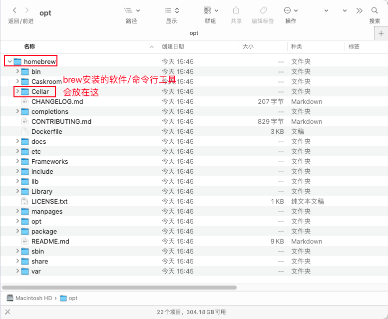 打开访达,使用快捷键Shift + Command + G前往/opt可以查看 homebrew 安装在隐藏目录/opt里面(M 芯片才是这个路径)
