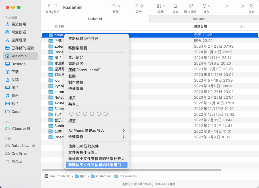 选中brew-install文件夹右键选择【新建位于文件夹位置的终端窗口】