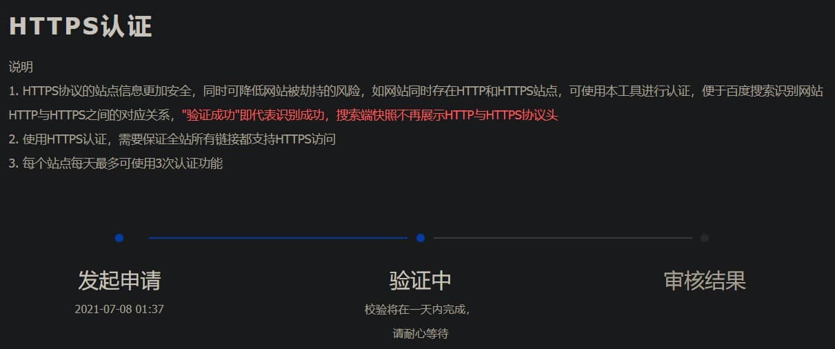 返回百度站点验证网页,点击【完成验证】