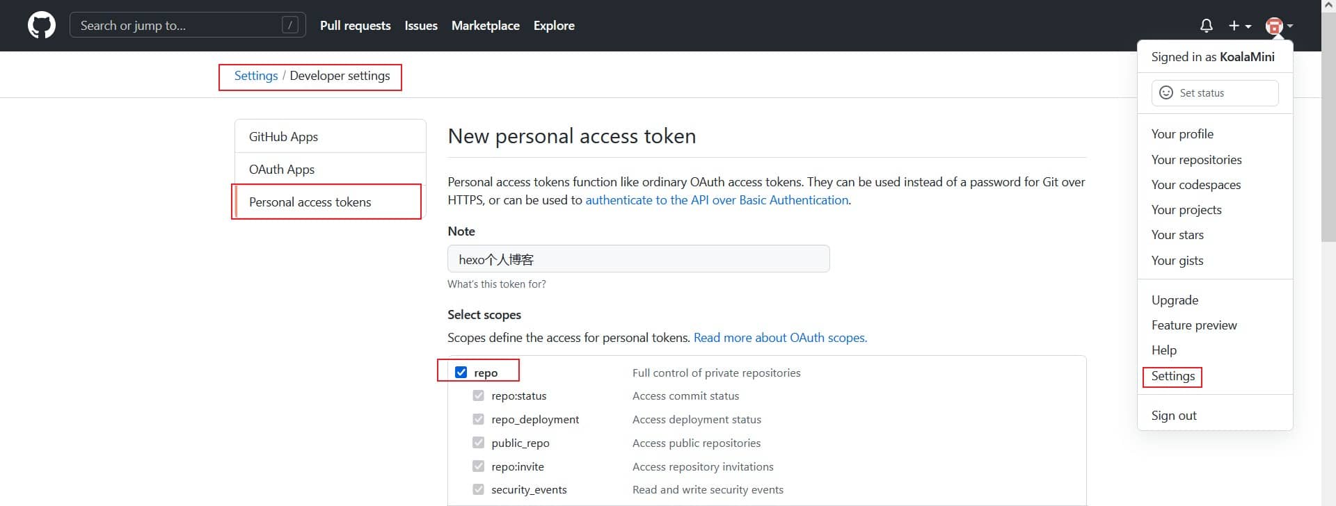 hexo deploy部署到 github 仓库,缩写为hexo d - 浏览器打开博客网址,例如:https://koalamini.github.io/
