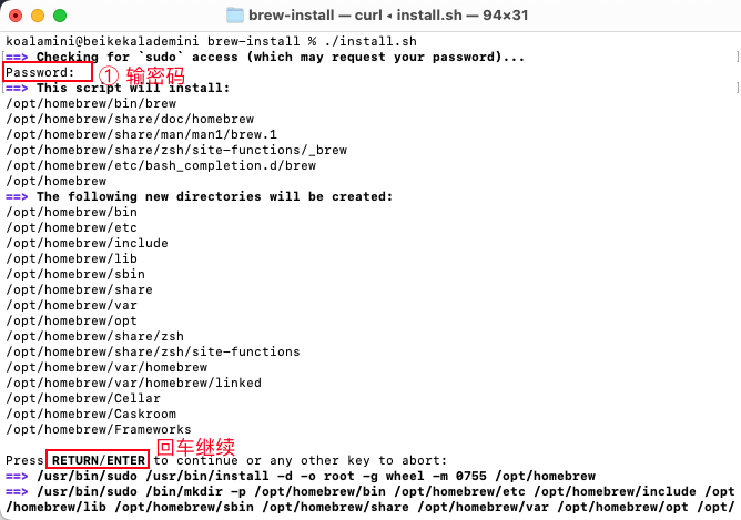 为了理解git clone --depth=1 https://mirrors.tuna.tsinghua.edu.cn/git/homebrew/install.git brew-install /bin/bash brew-install/install.sh命令,这里拆解执行
